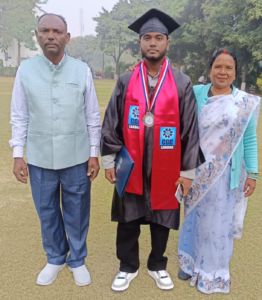 माता-पिता के नैनों से खुशी के आंसू निकल गया। दोनों के लिए यह गौरवान्वित होने वाला क्षण था। शोभित ने पढ़ाई का कोर्स पूरा कर लिया, अप्रैल-2025 में आयोजित निर्धारित परीक्षा उत्तीर्ण की है, जिन्हें कंप्यूटर विज्ञान और इंजीनियरिंग के अनुशासन में इस विश्वविद्यालय की बैचलर ऑफ टेक्नोलॉजी की डिग्री प्रदान की गई है। उन्होंने 10.00 में से 9.32 का संचयी ग्रेड प्वाइंट औसत विशिष्टता के साथ प्राप्त किया है। मौके पर राज्यपाल तथा अन्य विशिष्ट अतिथियों द्वारा सभी छात्रों को डिग्री प्रदान की और उनके उज्ज्वल भविष्य के लिए शुभकामनाएं दीं। पुत्र के दीक्षांत समारोह में डिग्री मिलते ही, माता-पिता और परिवार के लिए यह अत्यंत गर्व और खुशी का क्षण रहा। बेटा का औपचारिक रूप से अपनी शिक्षा पूरा करना उपलब्धि का प्रतीक रहा वहीं परिवार के लिए जश्न का अवसर।
