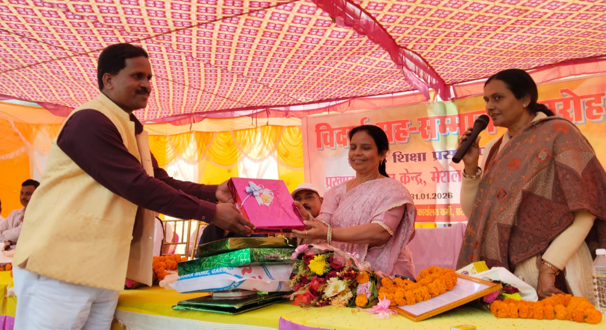 मेराल । मुख्यालय के आदर्श मध्य विद्यालय सह प्रखंड संसाधन केंद्र परिसर में शनिवार को विदाई सह सम्मान समारोह का आयोजन कर सेवानिवृत्ति प्रखंड शिक्षा प्रसार पदाधिकारी रंभा चौबे को भावपूर्ण विदाई दी गई। इस अवसर पर सेवानिवृत होने वाले अन्य आधा दर्जन शिक्षकों को भी सम्मान पूर्वक विदाई दी गई। प्रखंड के शिक्षक, शिक्षिका, सीआरपी, बीआरपी एवं प्रखंड शिक्षा कर्मियों द्वारा आयोजित समारोह में प्रखंड प्रमुख दीपमाला कुमारी, विधायक प्रतिनिधि डॉ लालमोहन, शिक्षक व एसटी एससी कर्मचारी संघ के जिलाध्यक्ष रघुराई राम, मुखिया पति मुन्ना राम सेवानिवृत बीईईओ जयशंकर राम, शिवकुमार सिंह, शिक्षक संघ के शिव शंकर सहित बड़ी संख्या में शिक्षक, शिक्षिकाएं, बीआरपी, सीआरपी तथा गणमान्य लोगों के साथ विद्यालय के बच्चे शामिल रहे।
