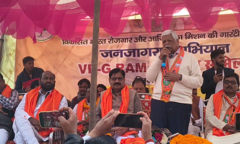 मेराल । भारतीय जनता पार्टी का विकसित भारत जी-राम-जी जनजागरण अभियान को लेकर मेराल हाई स्कूल के मैदान में रविवार को आयोजित जिला स्तरीय सम्मेलन जिलाध्यक्ष उदय कुमार कुशवाहा की अध्यक्षता में संपन्न हुई। सम्मेलन का शुभारंभ पलामू सांसद वीडी राम, गढ़वा विधायक सत्येंद्र नाथ तिवारी, पूर्व सांसद घूरन राम, युवा नेता सूरज गुप्ता, रघुराज पांडे, विनय कुमार चौबे आदि ने पंडित दीनदयाल उपाध्याय और डॉ. श्यामा प्रसाद मुखर्जी के चित्रों पर माल्यार्पण व पुष्पांजलि अर्पित कर किया गया। सम्मेलन में बड़ी संख्या में उपस्थित कार्यकर्ताओं और ग्रामीणों को संबोधित करते हुए सांसद वीडी राम ने कहा है विपक्ष द्वारा यह भ्रम चलाया जा रहा है कि महात्मा गांधी का नाम हटाने के लिए मनरेगा योजना का नाम बदल गया है जबकि मनरेगा के 20 वर्षों के कार्य अनुभव जिसमें सुधार के व्यापक जरूरत थी उसके आधार पर गांव के विकास के लिए केंद्र सरकार द्वारा विकसित भारत जी-राम-जी योजना लाई गई है। सांसद ने जोर देकर कहा की मनरेगा योजना का समीक्षा संसद के विशेष कमेटी जिसमें सभी दलों के सांसद रहते हैं द्वारा करने के बाद उसमें बदलाव किया गया है। नाम बदलने से विपक्ष को न जाने क्या परेशानी है। नई योजना में मजदूरों को ज्यादा काम मिलेगा, सात दिनों में मजदूरी भुगतान होगा।