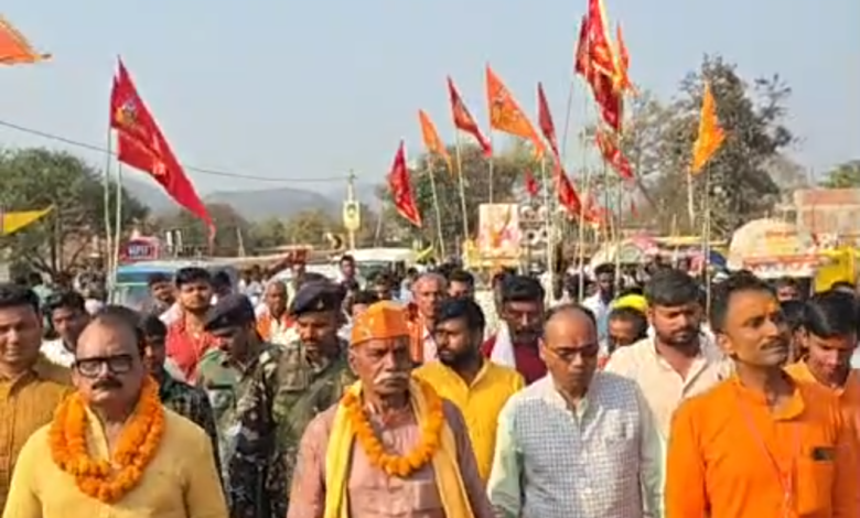 प्राण प्रतिष्ठा से पूर्व मूर्ति के नगर भ्रमण सह शोभा यात्रा में शामिल हुए पूर्व मंत्री मिथिलेश